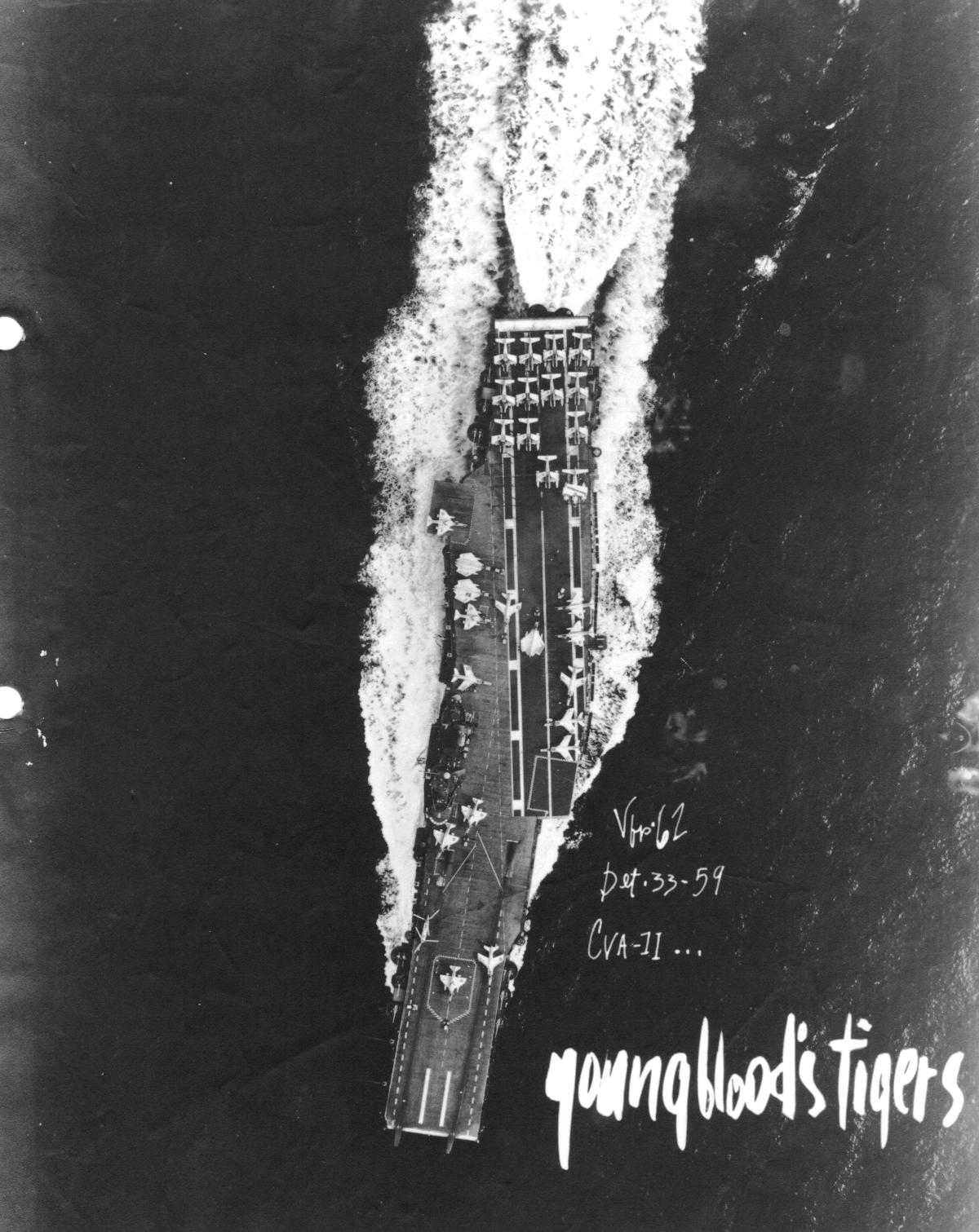 We departed Norfolk on 3 November aboard the USS INTREPID (CVA-11) for LantFlex 2-58. Since most of us are warm weather sailors at heart, we were fortunate that the exercise was scheduled for the Caribbean area. We certainly have no complaint about the scheduling of the photo planes on this ship. Prior to the loss of Sealtest 948, we had been scheduled for an average of three-two plane launches per day (six sorties) and when we came within range of land targets, all of our flights were scheduled and flown as P/R. We were indeed gratified by our reception and the understanding of our problems that was shown by all concerned and I feel that this condition was partially brought about by the fine reputation Barney SMITH’s team enjoyed while aboard. Thanks, Barney, for preparing a smooth road for us!